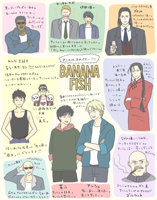 アッシュと英二の可愛いイラストや4コマ漫画など、見どころ満載です。 令東みかん様のブログです。 バナナフィッシュやその他ジャンルのイラスト・小説が充実しています。 hinata様のブログです。 とっても仲の良いアッシュと英二のイラストに大注目です。選択した画像 可愛い バナナ フィッシュ イラスト 2733 最高のイラスト画像 エレガントバナナフィッシュ アニメ 感想 可愛い バナナ フィッシュ イラスト 可愛い バナナ フィッシュ イラストBanana Fishポップアップストア In タワレコ全国8店 3 6 3 22 開催 可愛い バナナ フィッシュ イラスト √無料でダウンロード! 可愛い バナナ フィッシュ イラスト バナナフィッシュの6話を見て感想を書かせていただきます。 前回出所したアッシュさんは、今回は故郷に戻ることになりました。 1 海外の反応